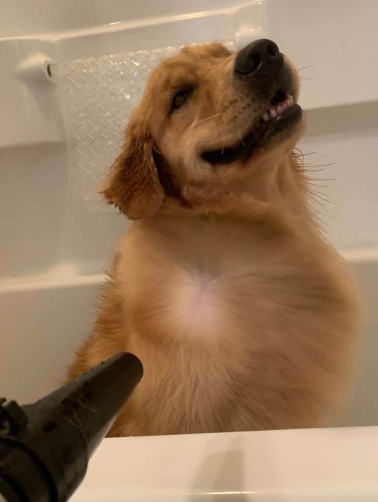 Dog bathing and washing in your home and atmosphere. Gentle soap provided unless otherwise prescribed by a vet.